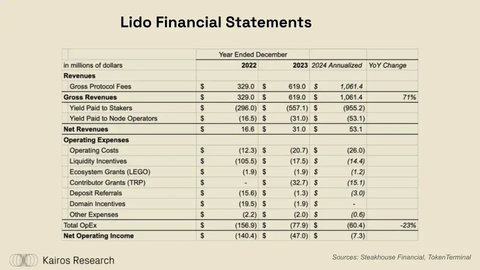 仅在过去两年,Lido 就在削减成本方面取得了巨大进步。流动性激励在引导 stETH 方面非常重要,高级用户自然会倾向于 LST,因为它在整个生态系统中流动性最好的。我们相信,随着 stETH 拥有令人印象深刻的护城河,Lido DAO 将能够进一步减少流动性激励。即使削减成本,700 万美元的盈利可能也不足以证明 LDO 10 亿美元以上的 FDV 是合理的。