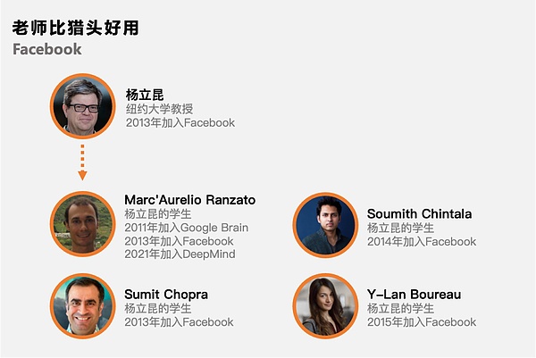 和Google争夺DeepMind的是Facebook。当DeepMind花落Google后,扎克伯格转而挖来了“深度学习三巨头”之一的杨立昆。为了将杨立昆纳入麾下,扎克伯格答应了他许多苛刻要求,比如AI实验室设立在纽约,实验室与产品团队完全划清界限,允许杨立昆继续在纽约大学任职等等。