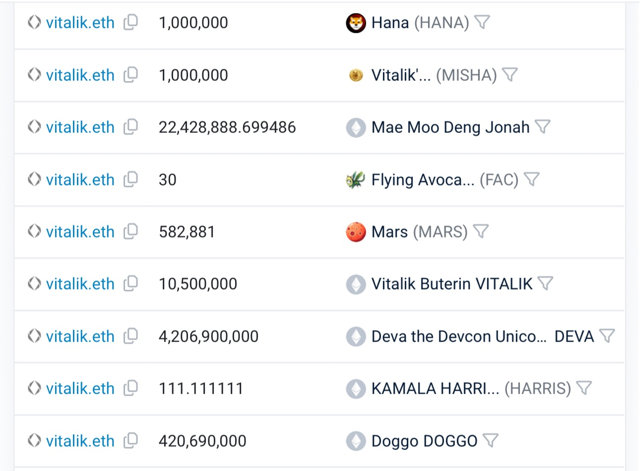 下图这些代币都捐赠到 Vitalik 的钱包中,如今,给 Vitalik 地址打钱做慈善似乎成为了新的营销方式。