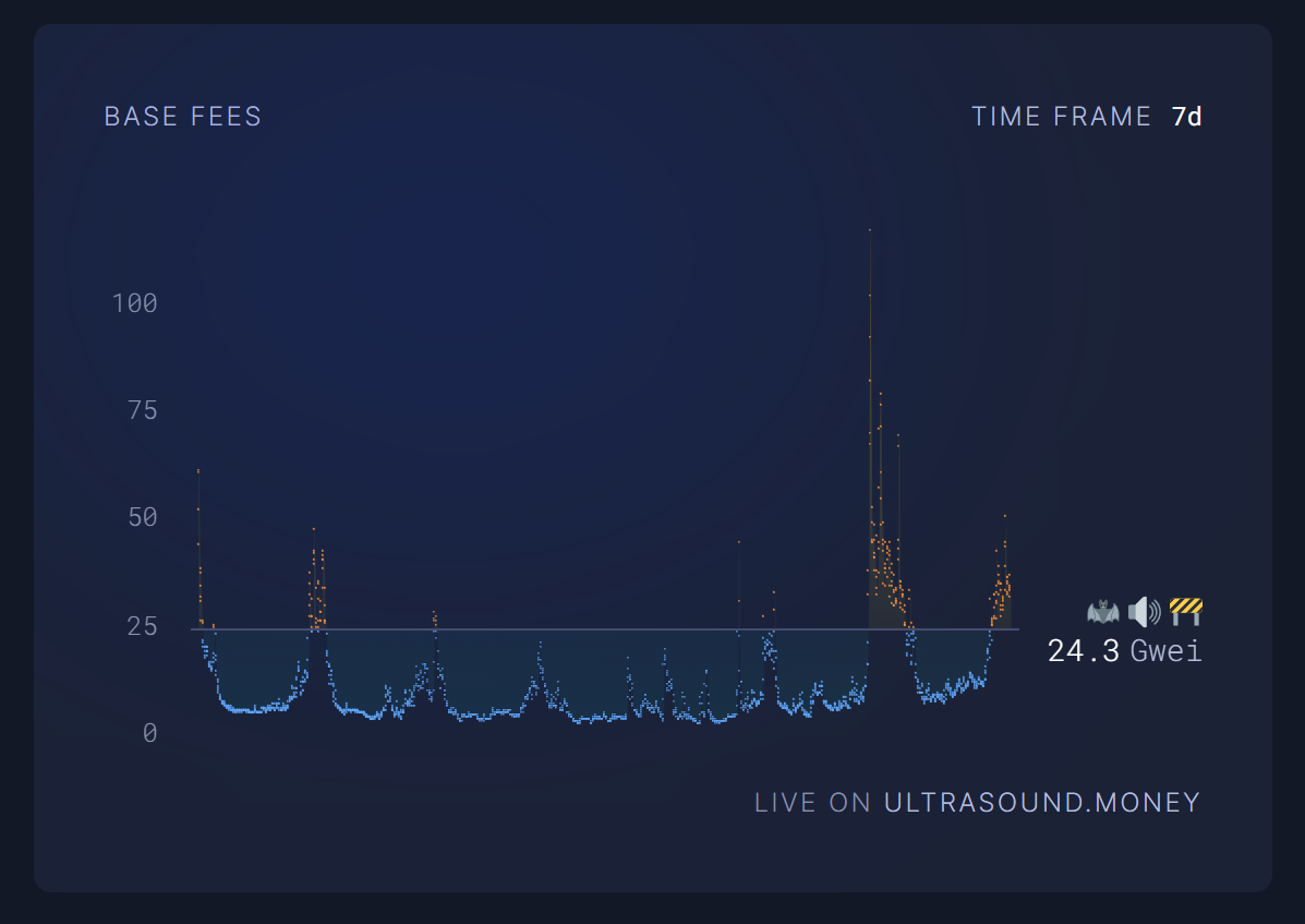 从 ETH 过去一周的 Gas 费变化情况来看,我们能够很直观地看到 ETH 主网的回暖: