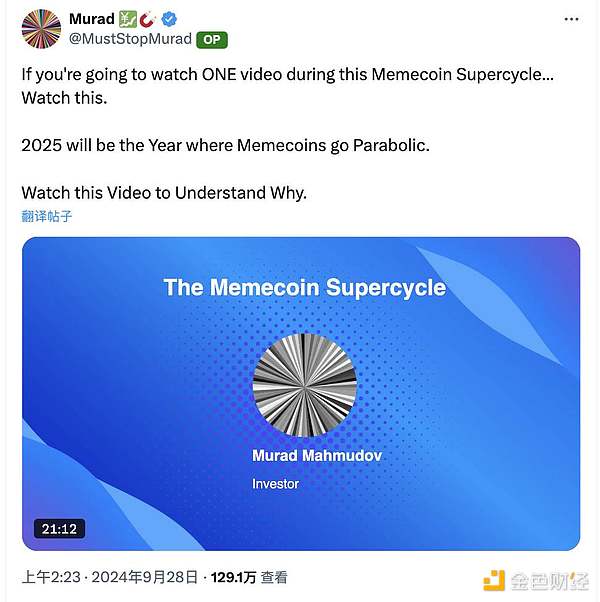 今天的正文《The Memecoin Supersycle》是 Murad 在刚刚过去的新加坡 TOKEN 2049 大会的演讲⬇️