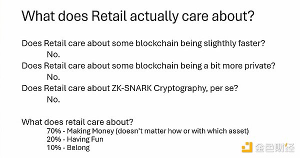 以后做事情,可能会是 Memecoin 先行,吸引大众对共识做金融定价,优胜劣汰夯实社区后,再做有趣、有价值的事情,反过来又能赋能 Memecoins。这不就应了那句话「Memecoin 是一个生态的名片」,潜台词是没有 Memecoin 出圈,大概率这个生态连基本的社区共识都不足够。