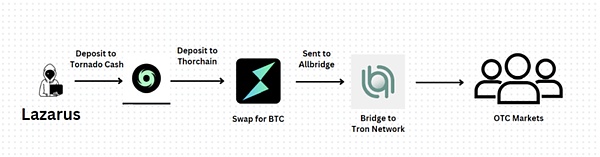 尽管各国加强执法,但网络诈骗依然猖獗,2023 年针对东亚和东南亚受害者的诈骗造成的经济损失估计在 180 亿美元至 370 亿美元之间。随着高风险的虚拟资产服务提供商(VASP) 的兴起,网络犯罪分子越来越多地利用加密货币洗钱,常见做法是在场外交易市场将犯罪所得直接兑换成现⾦或兑换成 USDT 作为稳定的中介货币,这种行为的交易量巨大,且关联着多种犯罪活动,令各国政府在监管和打击洗钱活动中面临重重挑战。据发现,一家位于湄公河的高风险 VASP 在 2021 年至 2024 年期间处理了 490 亿至 640 亿美元的加密货币总交易量,据估计,它是亚太地区同类服务中最大的服务提供商,它还与 OFAC 批准的实体以及与黑客事件中出现的 Lazarus Group 相关的多个钱包进行交易。Lazarus Group 是一个臭名昭著的黑客组织,其在加密货币相关的洗钱活动中扮演重要角色,根据慢雾的分析,朝鲜黑客 Lazarus Group 的洗钱方式复杂多变,隔一段时间就会有新型的洗钱方式出现,具体可查看慢雾:2024 上半年区块链安全和反洗钱报告(https://www.slowmist.com/report/first-half-of-the-2024-report(CN).pdf)。