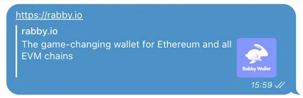 今年 3 月,慢雾安全团队和 Rabby Wallet 团队披露了一种利用 Google 广告进行钓鱼的攻击手法。具体来说,Rabby Wallet 团队并未购买任何 Google 广告,然而假广告却跳转到了真正官网。从 Google 搜索关键字情况来看,排在前两位的搜索结果都为钓鱼广告,然而第一条广告的链接却很反常,它显示的是 Rabby Wallet 的官方网站地址 rabby[.]io,通过跟踪发现,钓鱼广告有时会跳转到真正官方地址 rabby[.]io,而在多次更换代理到不同地区后,则会跳转到钓鱼地址 rebby[.]io,并且该钓鱼地址会更新改变。分析发现,关键操作在于钓鱼团伙利用了 Google 自家的 Firebase 短链接服务的 302 跳转来欺骗谷歌的展示。类似的钓鱼套路还出现在各种聊天软件上。以 Telegram 这款聊天软件为例,当聊天时发送一个 URL 链接,Telegram 后台会抓取 URL 链接域名、标题和图标进行预览展示。