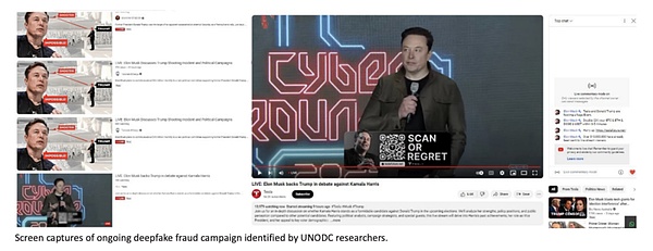 随着生成式人工智能的普及,犯罪活动的复杂性加大,身份盗窃、数据隐私侵犯等问题也对国家安全造成了威胁。犯罪集团利用 AI 进行网络钓鱼、制造虚假身份和个性化欺诈,大幅降低了技术门槛,提高了欺诈的速度和规模。深度伪造技术(Deepfake) 在网络欺诈中被广泛使用,犯罪分子通过伪造视频和音频进行复杂的诈骗,相应的犯罪活动大幅上升。结合二维码的网络欺诈也在增加,受害者常常被诱导访问恶意网站或泄露敏感信息。总体来看,人工智能的广泛应用加剧了网络犯罪的复杂性和频率。