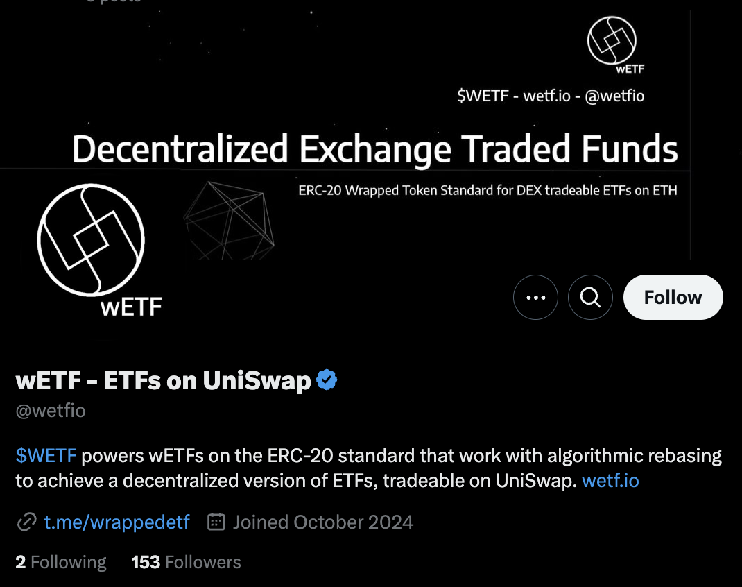 WETF 为 ERC-20 标准上的 wETF 提供支持,该标准与算法变基配合使用,以实现 ETF 的去中心化版本,可在 UniSwap 上进行交易。