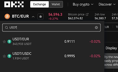 其二,根据TokenInsight消息,早在3月份,OKX已经宣布停止为欧盟用户提供USDT稳定币计价的加密货币交易对。目前,欧盟IP的用户进入OKX,仅可使用USDT/EUR、USDT/USDC交易对。但很显然,影响不大。