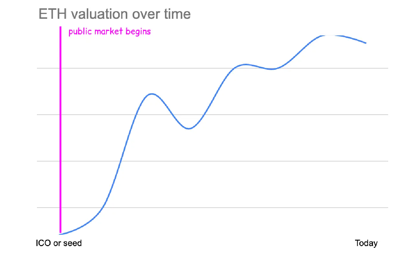 例如,ETH 在种子轮或 ICO 时的估值给买家留下了巨大的上升空间。