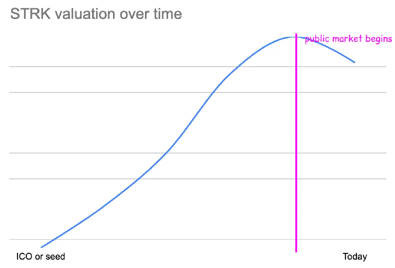 然而,对于像 STRK、EIGEN 或本轮周期的其他低流通量、高 FDV 代币来说,情况已经不同。