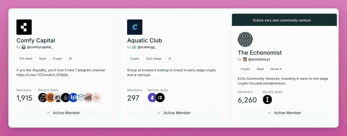 对于创始人:希望获得去中心化、社区驱动型资金的创始人可以通过 Echo 群组筹集资金,避免集中化的风险投资持股,并将股权或代币分配给真正的链上原生投资者。