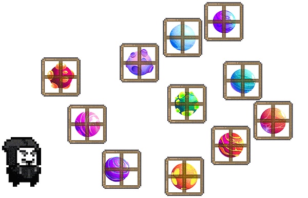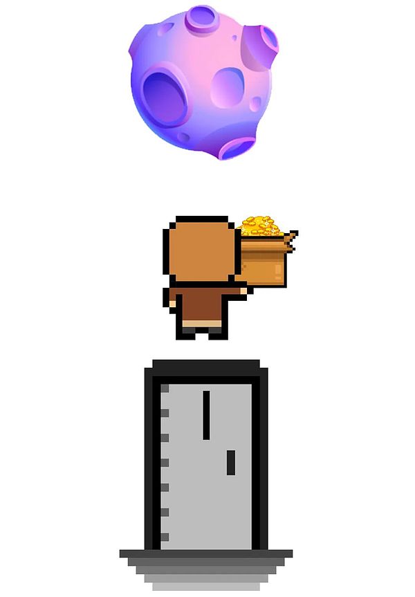 当你想用这些金币享受人生的时候,只需要再推开那些门,去你的星球上拿一颗半颗金币回来一卖,就妥了。