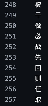 哦对,写的时候要注意一下格式,每写满 11 个数字就换行。写满 256 个,意味着你会写到 24 行第 3 个数。