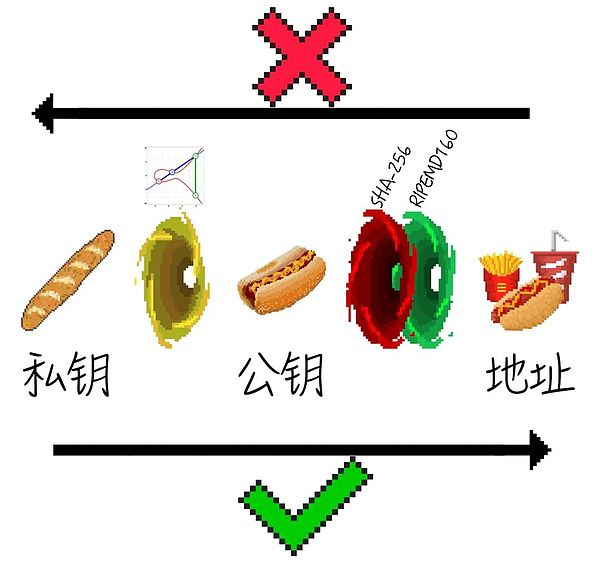 由于中本聪谨慎的设计,他没有把公钥直接当做地址,而是又做了两层加密才生成地址。