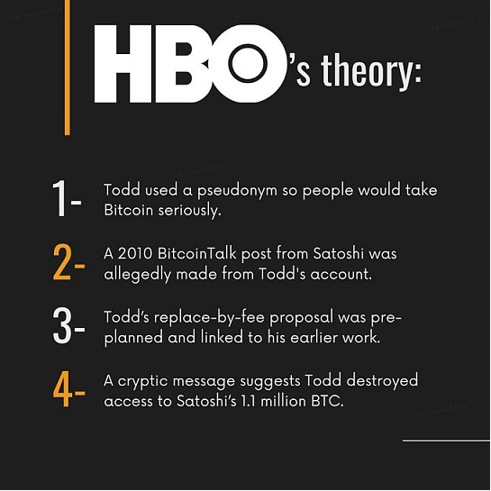 在论证中,一篇2010的古早中本聪邮件下,Peter Todd对其中提到的输入输出进行了回复,而两个账户在几天后都停止了活动,后续Peter 实现了该帖子中讨论的费用替换功能。因此HBO下了一个结论,这就是中本聪真人切错号进行了回复,因此Peter Todd就是中本聪。