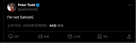 Peter Todd本人更是莫名其妙,在HBO纪录片播放前夕就已在公共平台称“我不是中本聪”,后续更是表示纪录片制片人Cullen Hoback的指证毫无根据,论据都是假的,自己仅仅是回复了中本聪的邮件,并讽刺本次纪录片导演,“因拍摄 QAnon 闻名的导演在这里也陷入了QAnon式的阴谋论思维。”