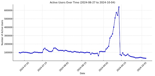 让我们来看看Catizen,作为Ton生态上热度最大的小游戏之一,从发币前64万活跃用户降至7万只需要一天,后续的用户留存数据更显低迷。从长线用户来看,哪怕游戏内容无任何改变,在空投预期不复存在后,高达90%及以上的用户立即抽身,最终沉淀留存的仅3万人左右。这样的用户留存比是否达到了投资人的预期以及实现了拉新的目的?哪怕获取了空投的用户转向交易所带来一波即时的用户增长,在抛售空投变现后,这些用户是否会像抛弃Catizen一样。当产品本身变身变成viral campaign,以拉新为目的的短期项目,哪怕短期为生态带来了一波增量,但真正沉淀下来的用户,能否满足生态和交易所预期,对得起这笔投资呢?我们仍然存疑。