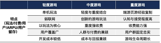 结合本系列文章第三部分(测试与运营),根据不同类型的产品与数据,会有不同的回收周期特征。轻度手游以休闲类游戏为主,大部分买量轻度手游以及小游戏均有广告变现,少部分为游戏内购 + 广告变现。一般而言,内购型轻度游戏回收周期通常为一周内,原因是游戏深度不够,游戏玩法不能支撑玩家的长期留存,所以必须在短时间内回收。无广告的休闲游戏一般变现能力稍弱,但玩家留存时间长,回本周期大概在 6 个月左右。中度手游介于轻度与重度之间,兼顾玩法和收费,类型包括卡牌、策略、放置、养成类等,回收周期和重度比较类似,一般为 3-4 个月。重度手游的玩法比较深入,运营活动会持续更新,玩家粘性高,但人群覆盖量不如中轻度手游,回收周期约为 2-3 个月,LTV 增长特点为次日是首日的 2 倍,7 日是次日的 2-2.5 倍(仅代表部分游戏)。