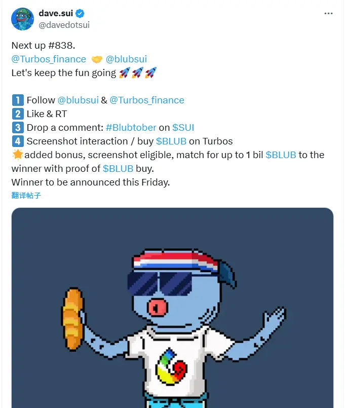 例如近日 Turbos 与 Sui 生态的头部 Memecoin $BLUB 的联名激励活动,用户通过 Turbos 的智能路由 (Smart Routing) 功能使用 $SUI、$TURBOS 或其他代币交易 $BLUB 或在 BLUB/SUI 流动性池中提供 LP 即可获得$BLUB 奖励。