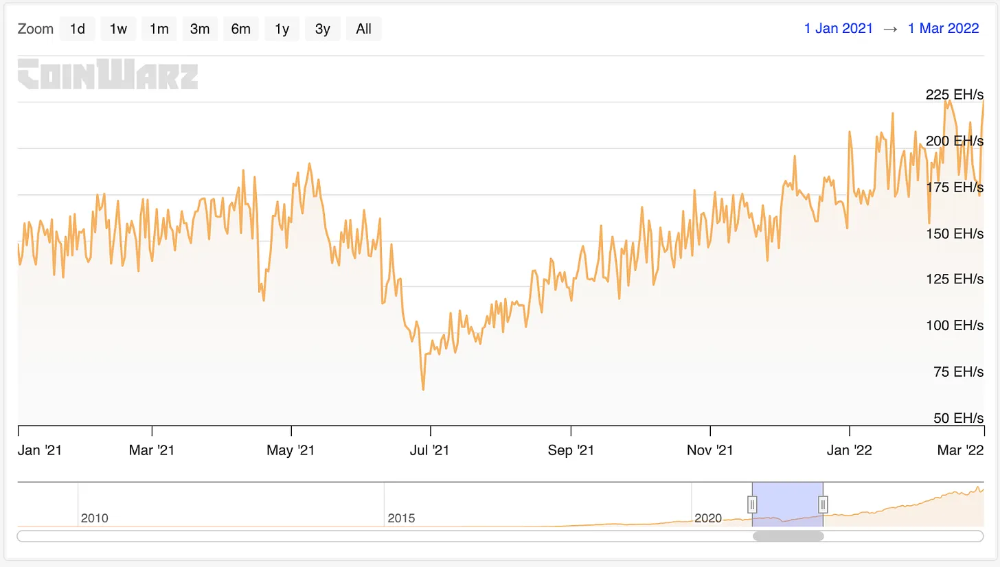假设任何一方将中东碳氢化合物从市场上移除,比特币区块链将继续发挥作用,并且价格至少将相对于能源保持其价值,并且以法定货币计算肯定会上涨。