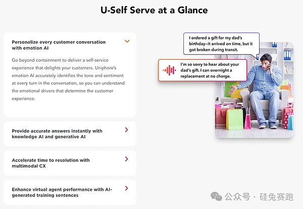 来自加州的Uniphore从2008年起就在探索为企业提供自动化对话解决方案,已经开发出包括U-Self Serve、U-Assist、U-Capture和U-Analyze等多个产品线,帮助客户通过语音、文本、视觉和情感AI技术进行更加个性化和情感丰富的互动。U-Self Serve主打精准识别对话中的情感和语气,让企业能够提供更加个性化的服务,来提升用户参与满意度;