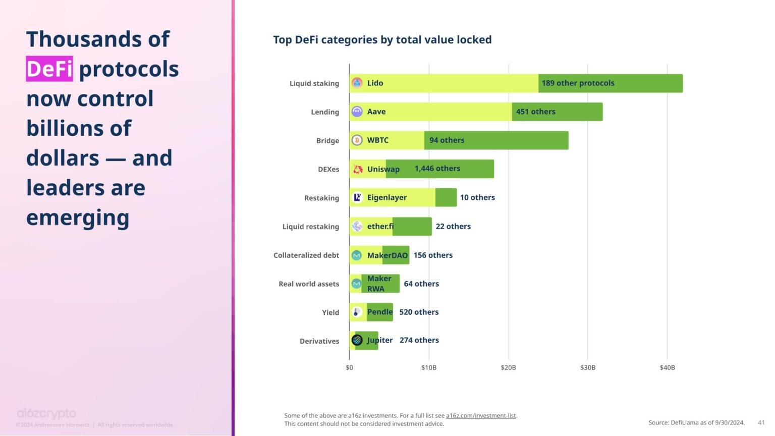 目前,有超过 1690 亿美元的资金被锁定在数以千计的 DeFi 协议中。其中,质押和借贷是一些主要的 DeFi 子类别。