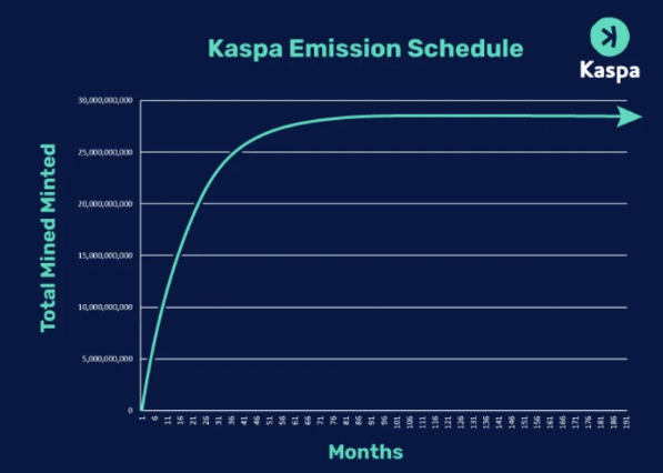 Kaspa 的代币发行设计为逐年减少,每年通过平滑的月度减少进行减半。最初可以通过 CPU 挖矿,网络逐步整合了 GPU 和 ASIC 挖矿能力。Kaspa 遵循精心设计的发行计划,以管理代币供应的增长。