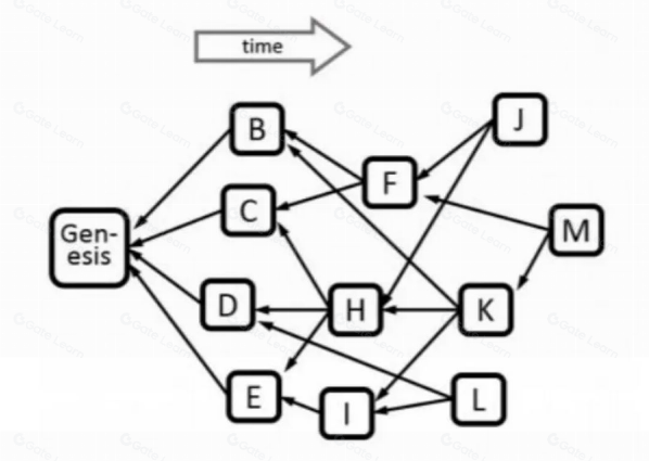 Kaspa 是一条基于 blockDAG 结构的 Layer-1 区块链,采用了 GHOSTDAG 共识协议,这是一种从 PHANTOM 机制演变而来的共识协议。与比特币相比,Kaspa 的主要区别在于其结构方式。比特币采用单链结构,而 GHOSTDAG 则使用有向无环图(DAG),其中一个区块可以指向多个其他区块。
