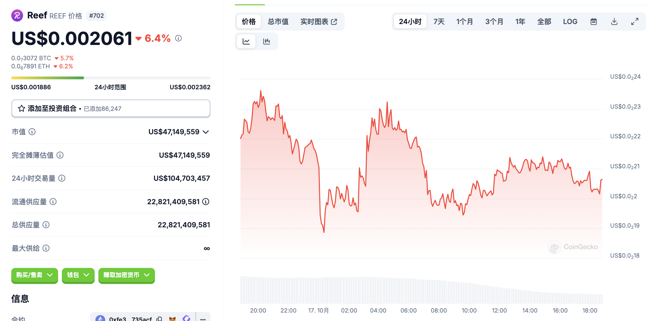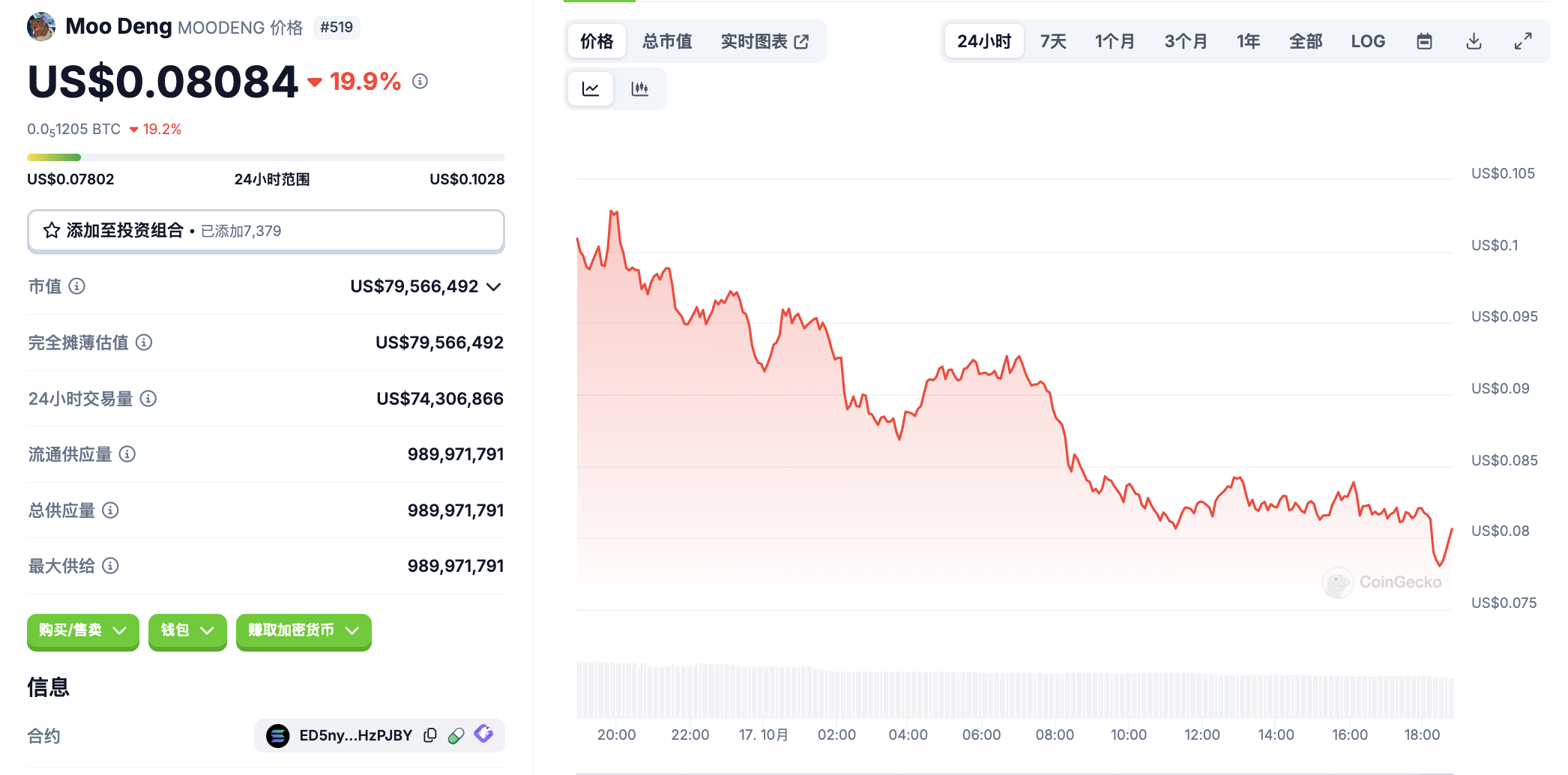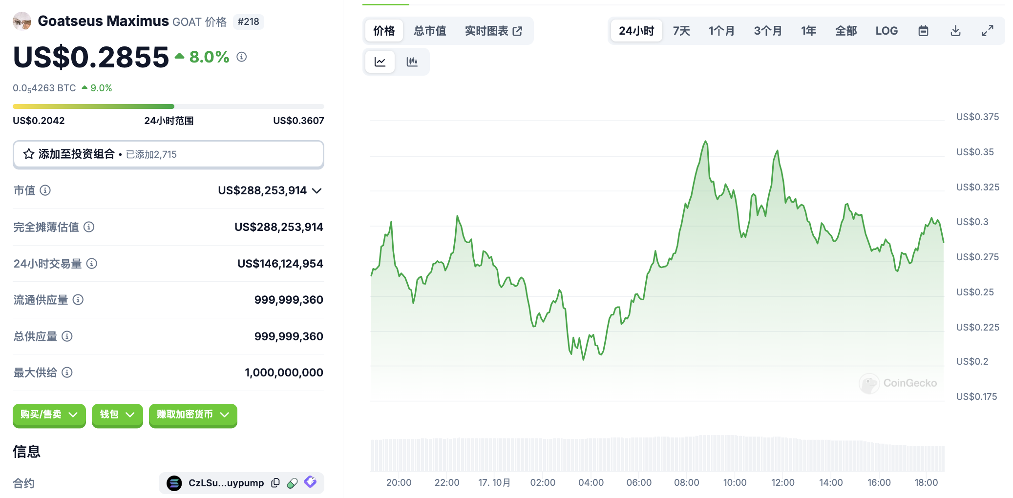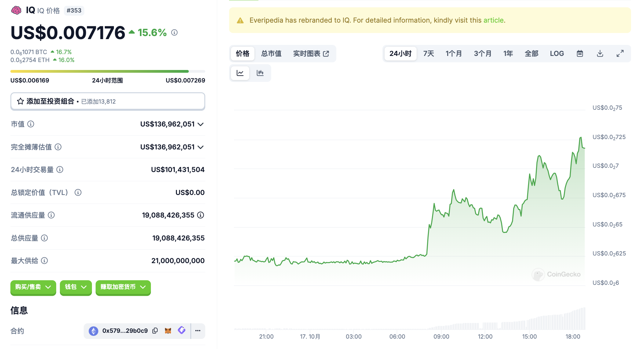 10 月 17 日代币波动情况,按交易量筛选并排列