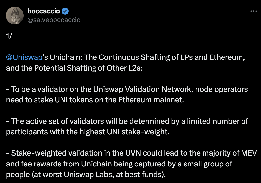 1.Unichain:LP 和以太坊的持续轴系,以及其他 L2 的潜在轴系,@salveboccaccio