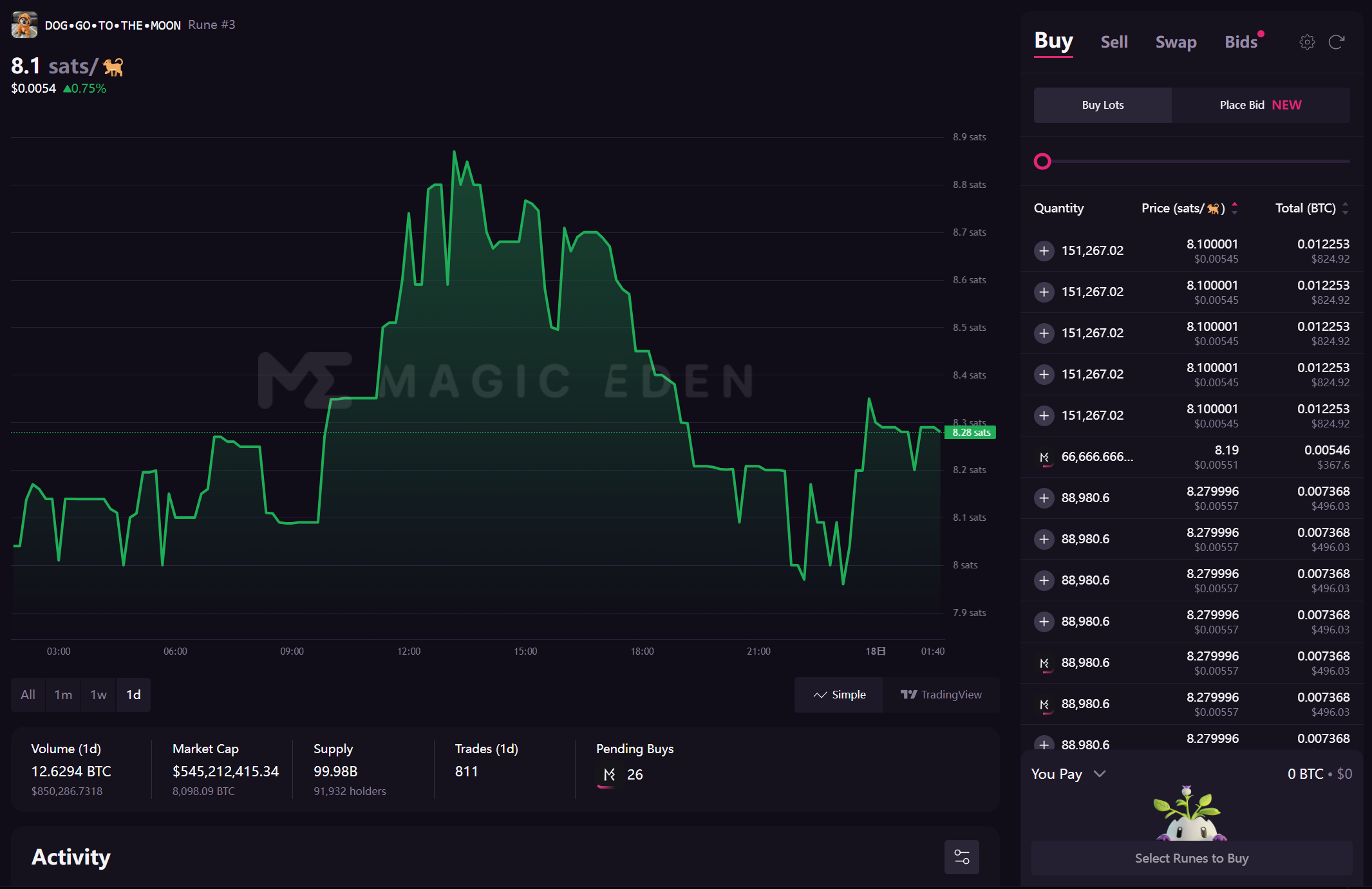 符文在 Magic Eden 上的购买界面,像极了没有图的 NFT