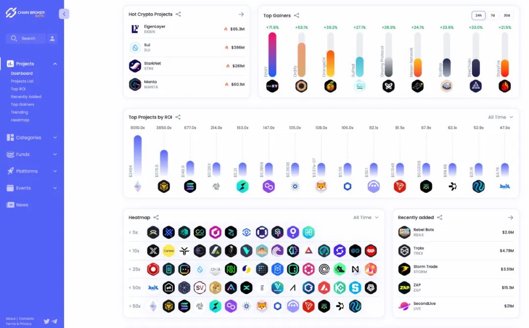· ChainBroker 是一个设计用于追踪网路和代币各种金融指标的服务。它使用户能够分析市场状况、投资者活动和平台参与情况。该网站还在某些类别中提供热点图,直观评估网路和资产随时间或特定时期的潜力。