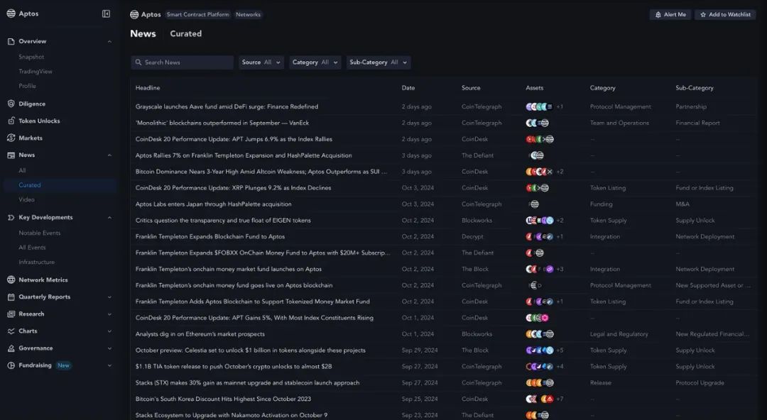 · Messari 除了提供基本的基本面数据外,其独特之处在于汇集最新的发展、新闻,并提供专门的研究报告。虽是付费研究工具,但十分推荐使用。