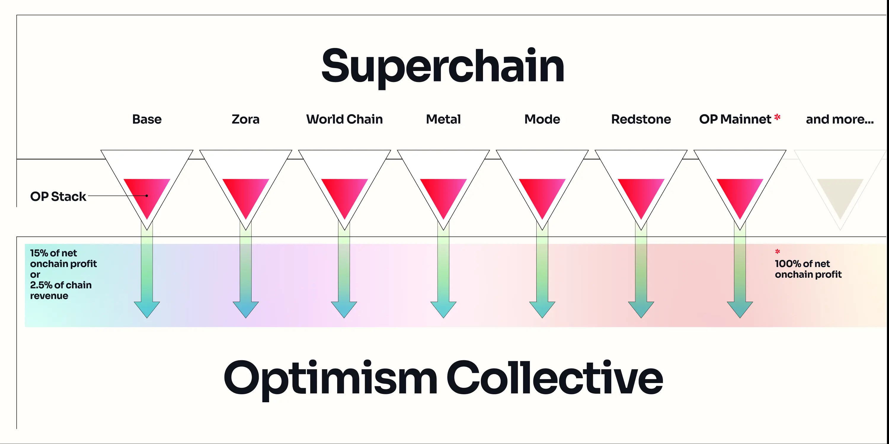 自此之后,Optimism超级链中的每条OP链都采用了标准化的收入共享模式运营,每条链都需要将链上排序器总收入或者纯利润的15%(具体为排序器总收入减去提交至L1的费用),并以较大者为准支付给Optimism Collective。