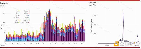 然而,随着 Blobscriptions 活动热度的减退,Blob 费用市场迅速回归到较低水平。