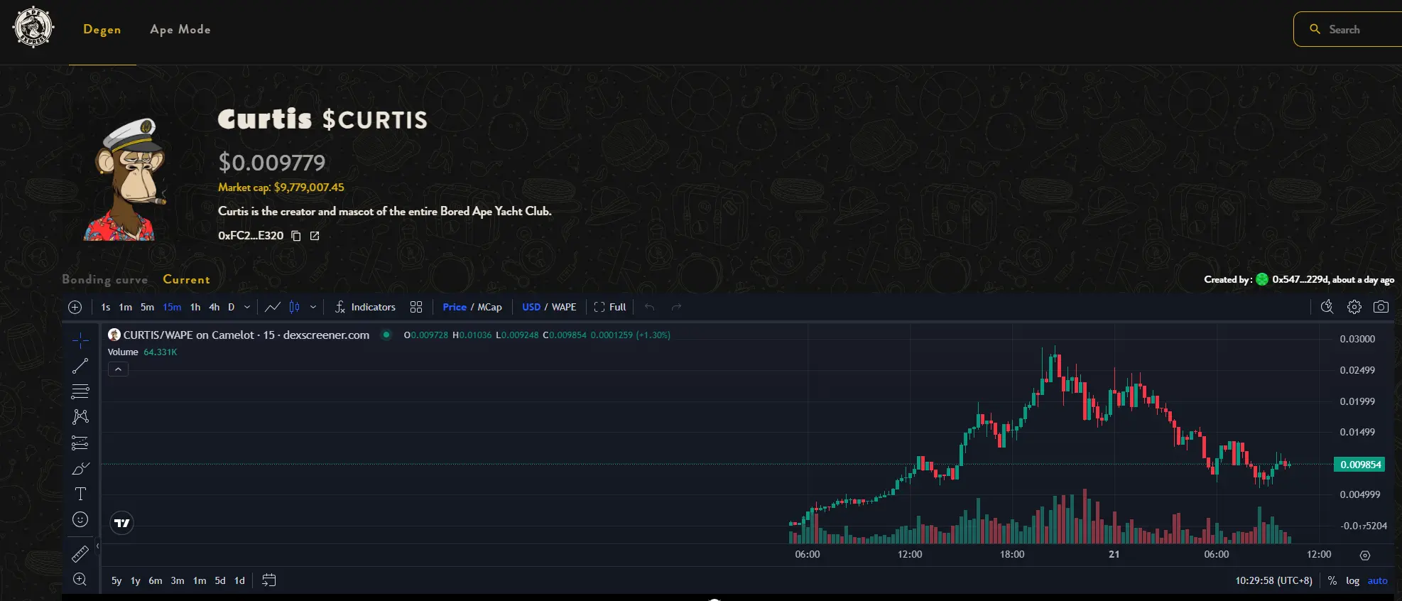 进入 Ape Express,选择代币进行交易即可。比如当前市值最高的 $CURTIS,就是个不错的例子。