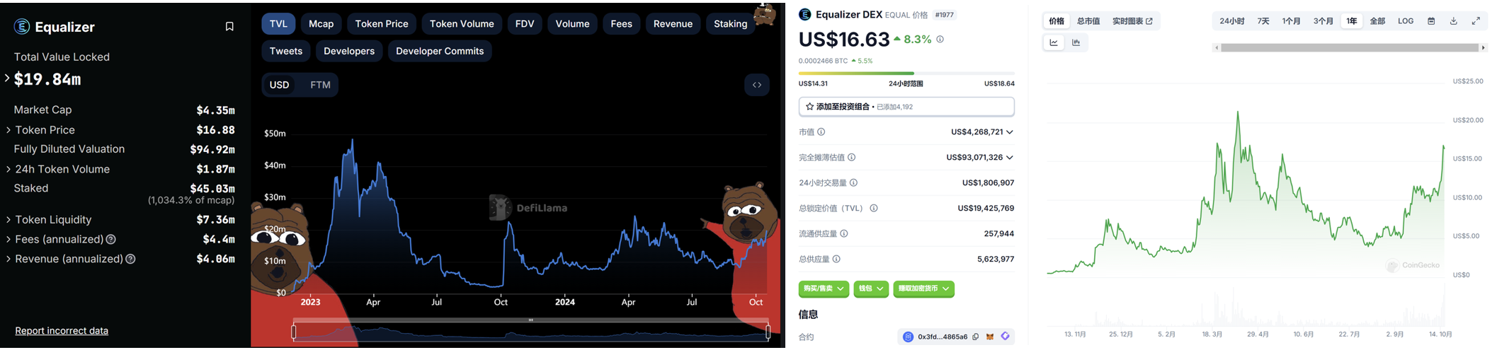 Equalizer 作为 Fantom 生态主推的 DEX,目前正在推进 Equalizer V5 和 SuperVoter。在过去一个月约增长 130%,TVL 高达 1984 万美元成为 Fantom 上第三大 DEX。