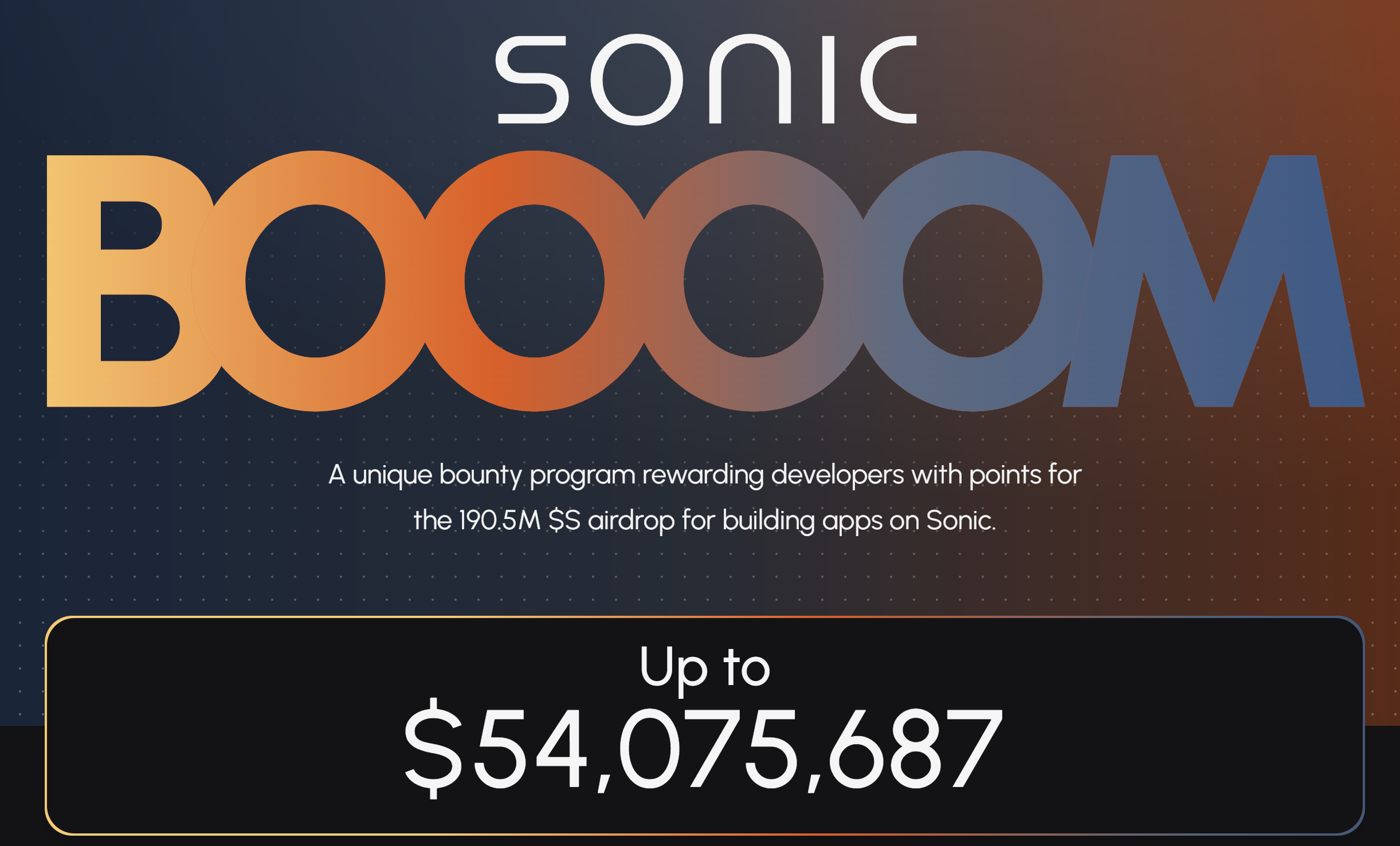 Sonic boom 是一个可以让开发人员获得宝石分配而兑换空投积分的赏金计划,开发者通过开发借贷、NFT、收益聚合器等项目经评选后获得三种不同等级的宝石奖励。Sonic boom 自今年 8 月 20 日启动,11 月 1 日截止。目前已有约 5400 万美金的总空投奖池,其中宝石积分的空投占总空投的 37.5%。