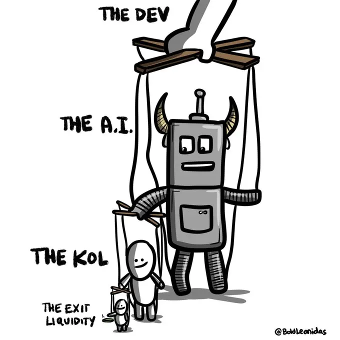 比如,它可能背后就是个科学家在用自己的主观认知冲,然后用了个搞交易的Bot 帮助快速冲进去赚到了钱,再在推特上分享。