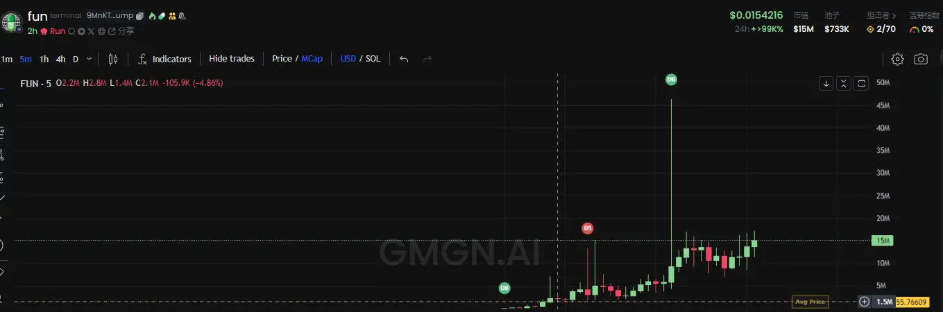 该 Bot 的同名 Meme 币 $FUN,小编观察到时市值不到1M,撰稿2小时内市值已经来到了15M;同时10M-100M之内,也是阴谋集团们最容易运作和吸引大家注意的舒适区间。