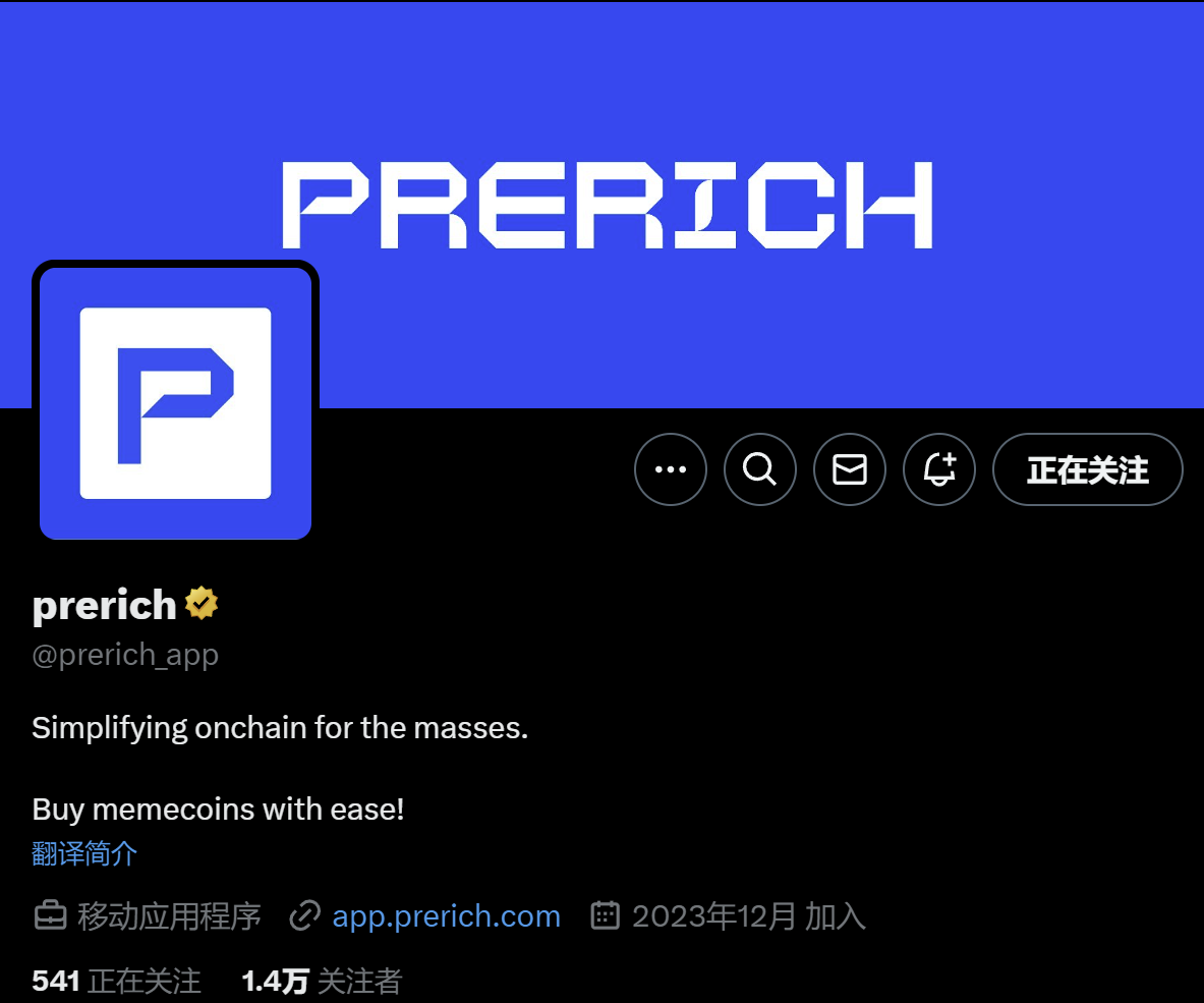 法币 meme 的细分赛道当然也不会留下 mooshot 一家踽踽独行,市场上也出现了对标 Moonshot 的法币 meme 支付产品:Prerich。