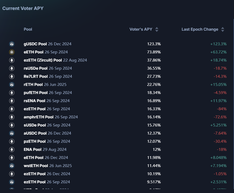 Pendle 提供了做多与做空收益率的工具,用户基于对收益率的预测和判断选择相应的投资策略,因此收益率是参与该协议的重要指标,Pendle 也提供了多种 APY 来反映当前的市场情况: