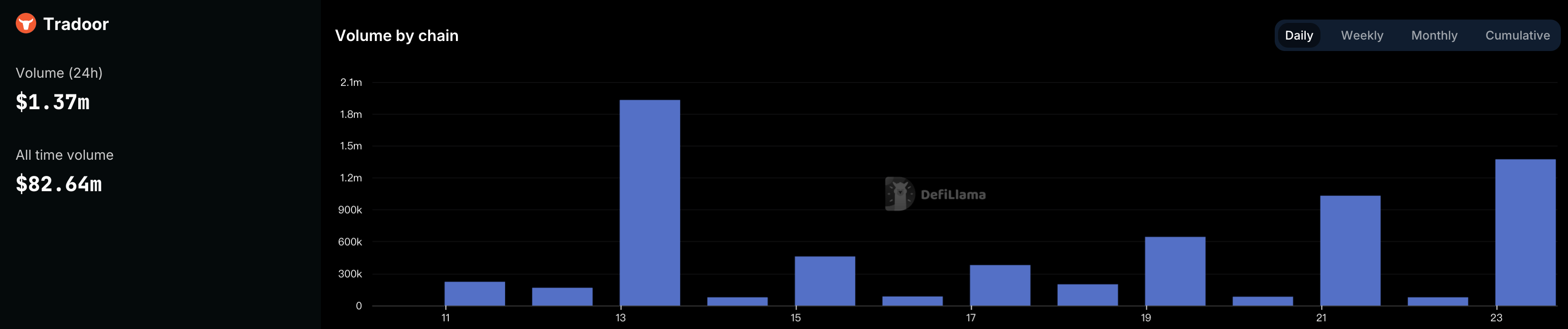 24 小时交易量增幅:+1621%