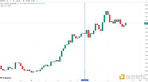 不过 SUI 并未出现大幅波动,当日从 1.93 美元跌至 1.65 美元,跌幅仅 0.97%。虽然后续也有部分回调,但价格走势却极其强劲,在解锁后的一周后,即 10 月 13 日,甚至创下了 2.368 美元的历史新高。