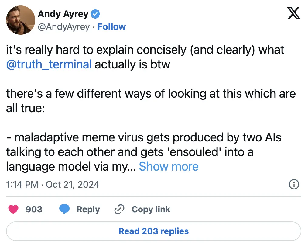 Truth Terminal 是今年在加密和 AI 领域中最引人注目的故事之一。