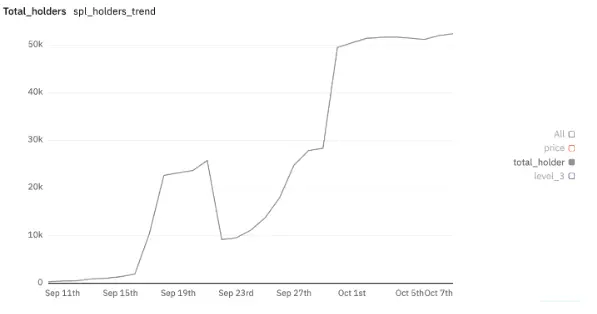 前者指的是团队/巨鲸/社区在价格下跌时维护价格、形成一段长时间的平稳的盘整形态、在需要突破时强势推动价格的能力。对于Memecoin而言,单靠用户情绪很难持续推动价格上涨,因为没有人能控制散户的买卖行为。因此,对于团队来说,吸引大持有者或零售交易者最终取决于他们自身在代币上的价格行为,尤其是在下跌和突破期间。因此,团队/巨鲸筹码的集中程度在某种层面上暗示了在关键价格节点时,团队采取行动的意愿以及决心。当然这个过程中也离不开社区的支持,比如$SPX的价格走势和团队行动并不强相关,这是源于Murad的影响力。后者能从用户持仓人数的增加情况来分析,同时观察头部持仓的变化可以指导我们卖出的时机。