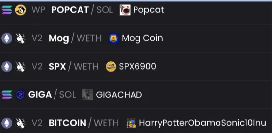 这5种代币里,最能体现这两个方向的代币是$POPCAT、$MOG、$SPX。