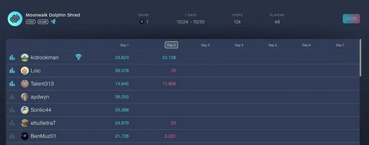 Moonwalk 是一款 Solana 链上的健身应用,结合了代币奖罚机制,帮助用户实现每日步数目标。通过创建私人或公共游戏,用户可以设定每日步数目标,并质押加密货币如 USDC、SOL 或 BONK,确保用户在实现目标的同时有代币经济的约束能力。