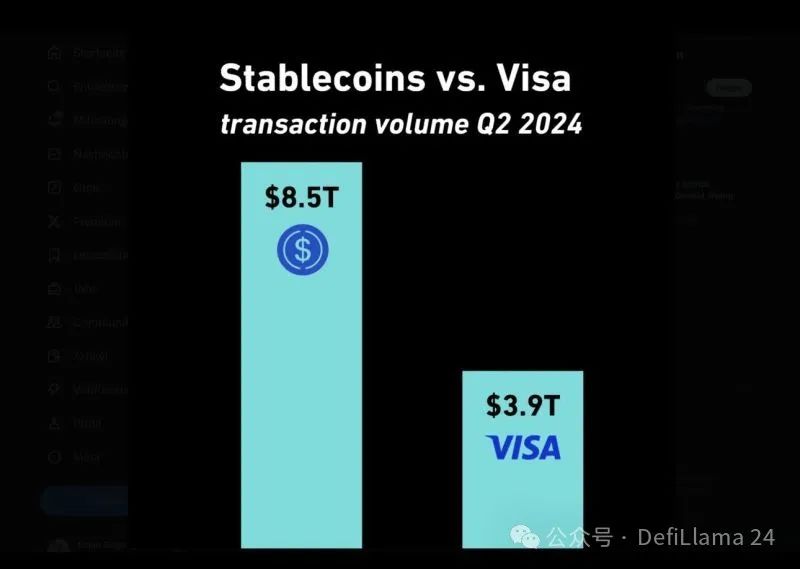 而这些稳定币并非闲置。仅在第二季度,稳定币处理的交易量就几乎是 Visa 的两倍,每月交易量经常超过数万亿美元。