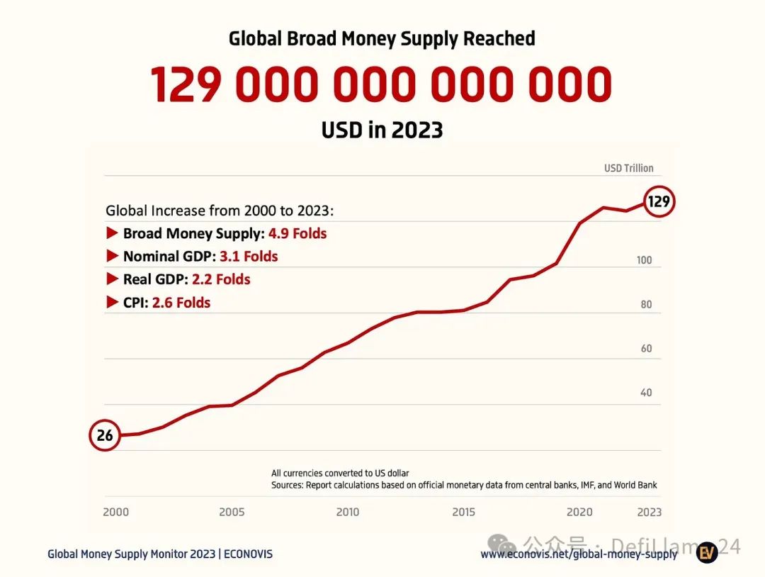 但稳定币才刚刚开始发挥其潜力。考虑这一点:全球货币供应量(M2)估计约为 129 万亿美元。