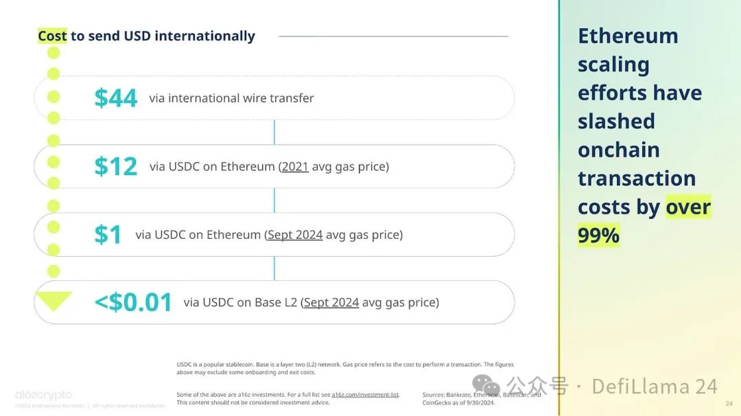 3 月份以太坊 Dencun 升级后,像 Base 这样的 L2 网络的平均交易成本已降至 0.01 美元以下。它几乎是即时的,并且在世界任何地方都可用。